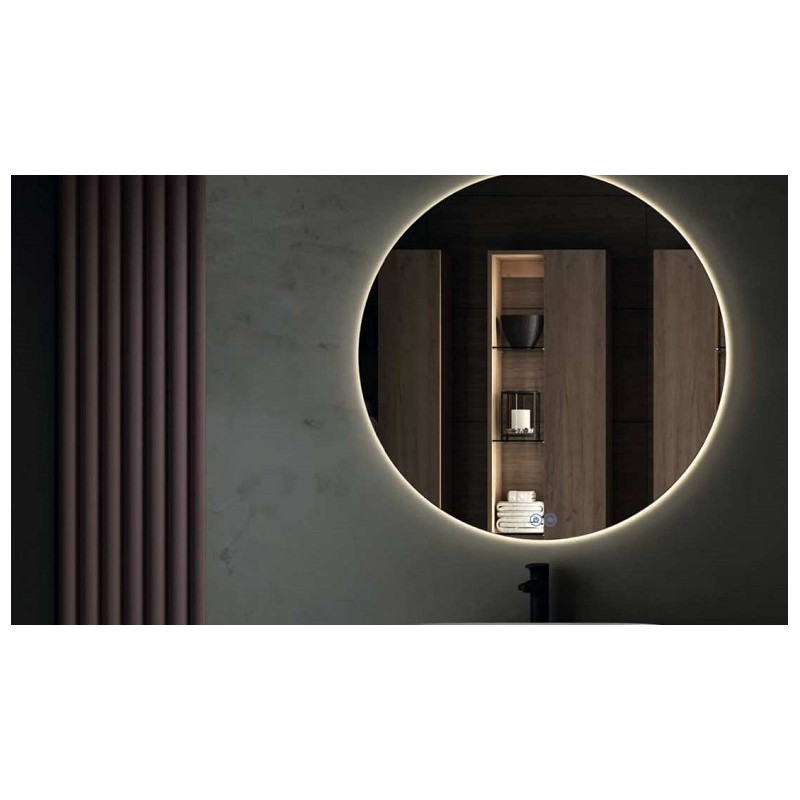 Espelho redondo LED; Iluminação ajustável; Desembaciador com interruptor touch no espelho; Estilo contemporâneo; Alta luminosidade; Pode alternar cor da luz, nomeadamente dourado e prateado; anti-ferrugem.
